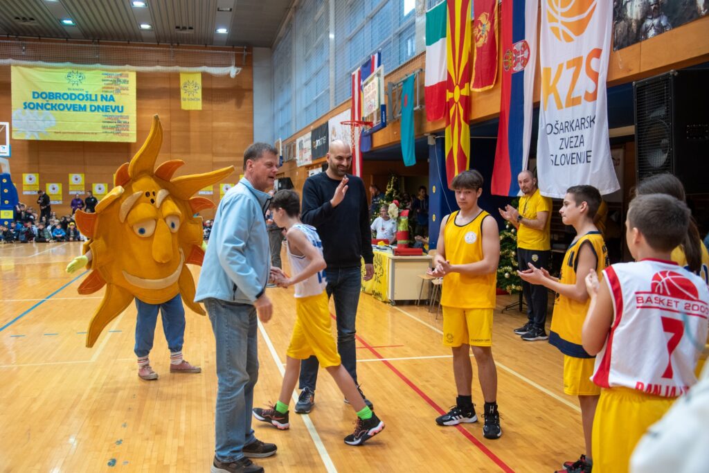 Na sliki: najboljša dva mlada košarkarja v BORISOVIH PROSTIH METIH na 23. Sončkovem dnevu, levo in desno sta legendarna košarkarja Nikola Plećaš in Željko Jerkov, na sredini pa Dejan Čikić – ambasador Sončkovega dne.